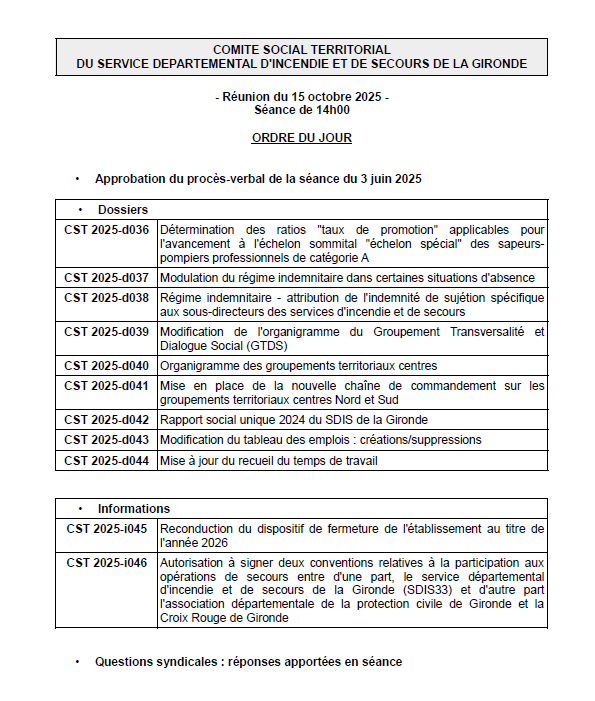 Ordre du jour du CST