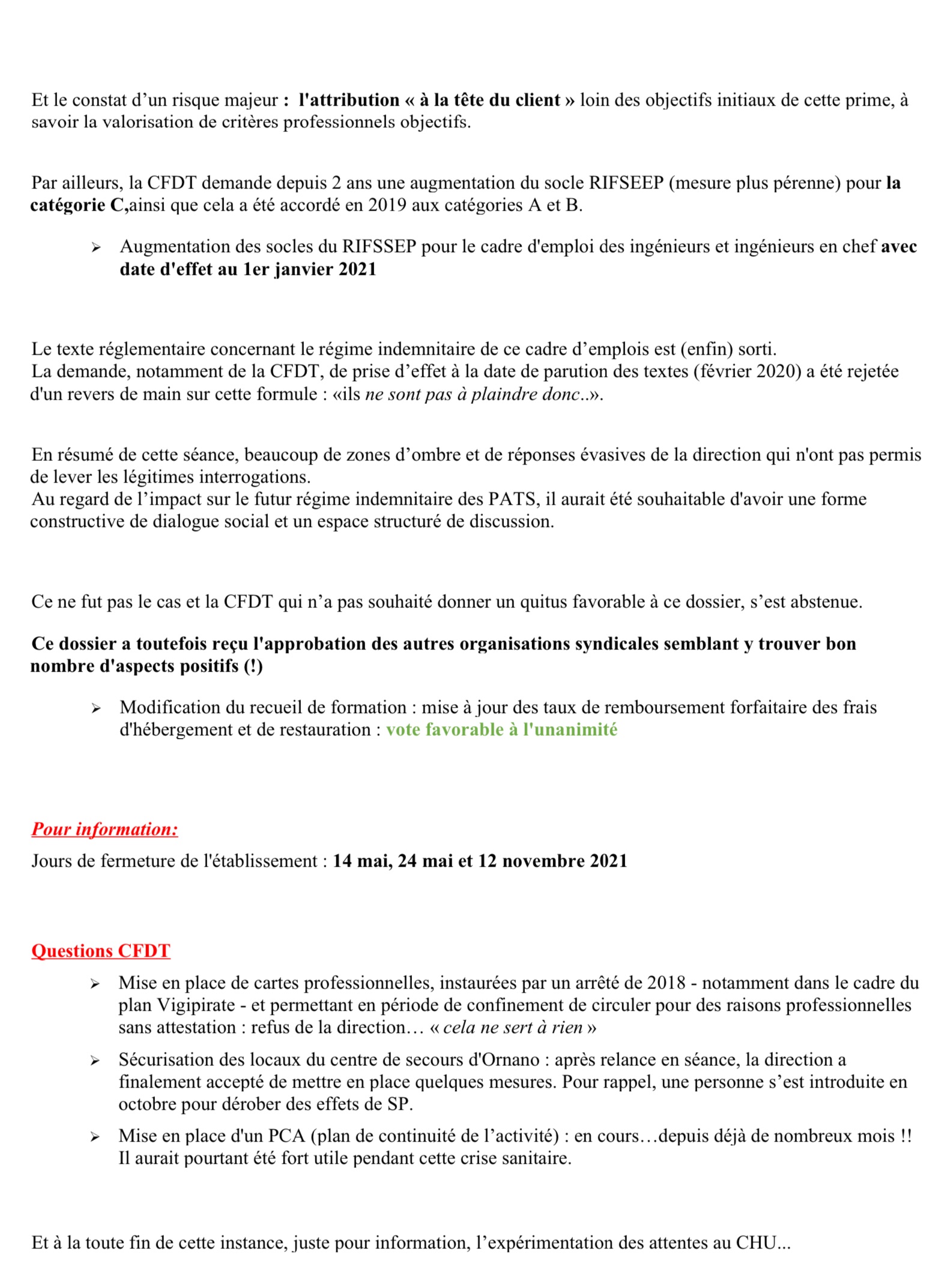 La CFDT reviendra sur ce point…forcément…